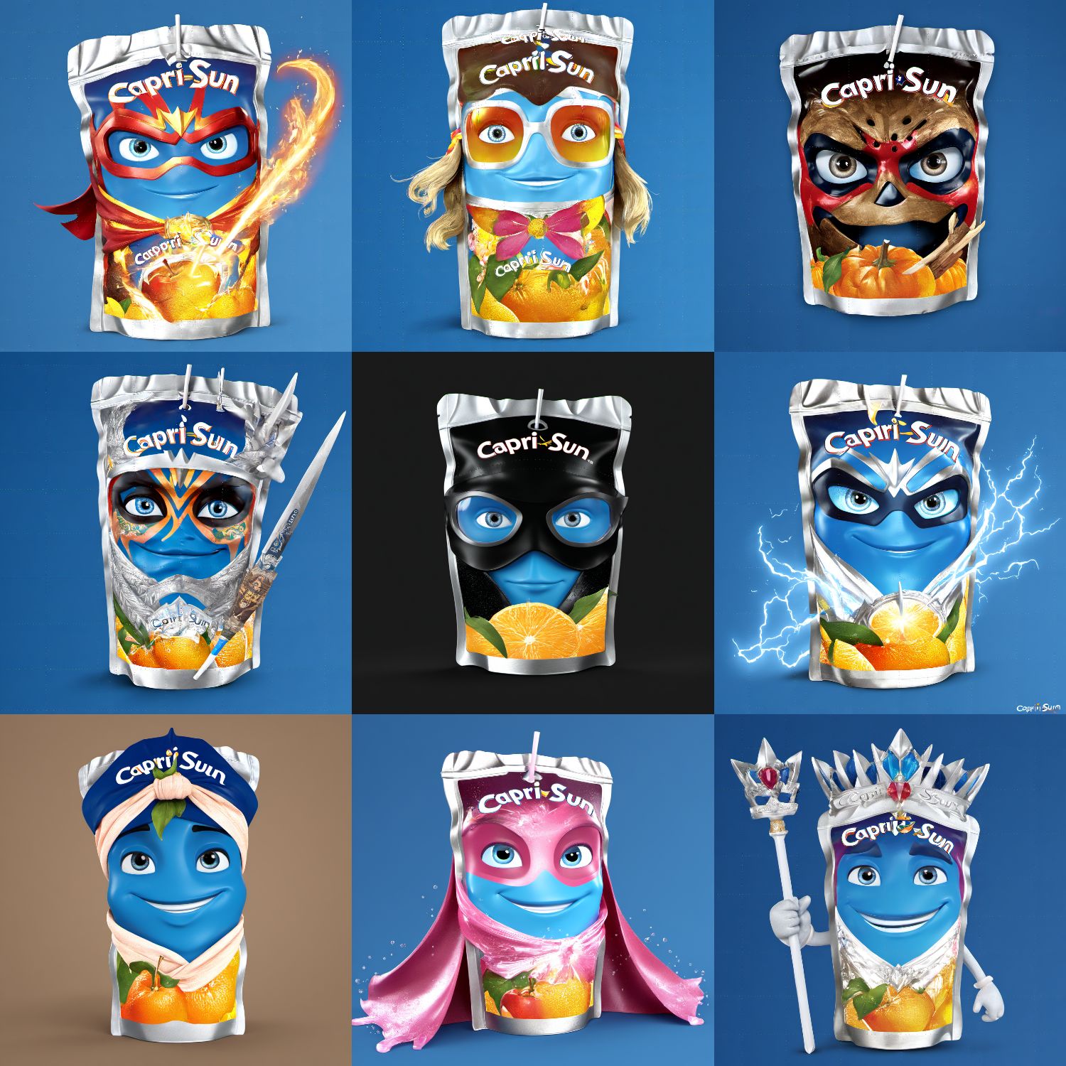 Another idea I pursued for this project was whether it is possible to delegate quick concept designs of a given - branded - mascot to AI. I was handed only 8 images of the character in various costumes, and I did my best to fine-train a model with those to be able to generate new ones. The results were all we could have asked for: The character was recognizable, the 'costume' you could prompt for could be nearly anything - again, there were only 8 original images, whose costumes I did not choose to generate again here - and the style fit the branding perfectly.