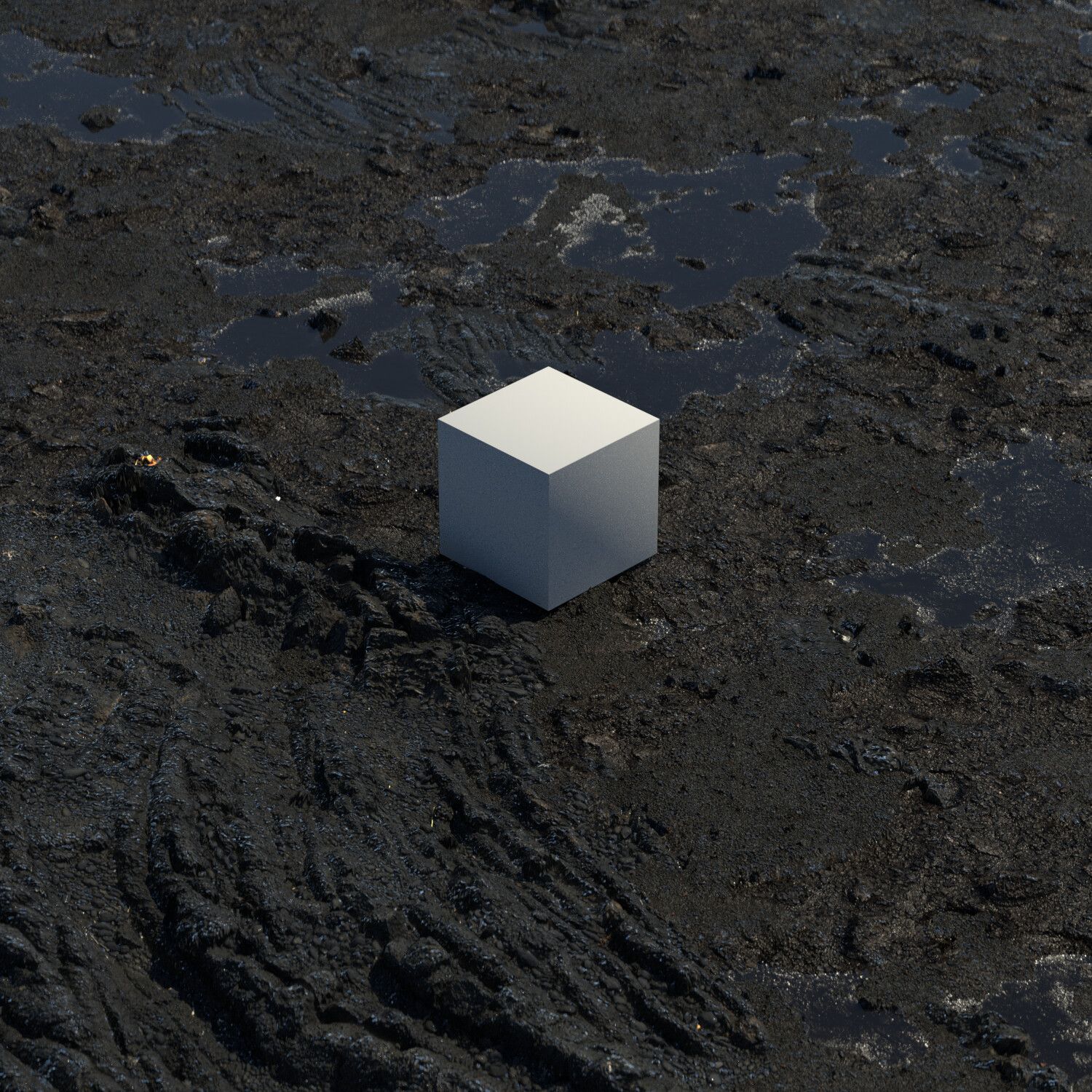 For this scene, I knew I wanted a big plane of muddy surface. So as to not have repeating patterns or, god forbid, sculpt it all manually, I built a procedural mud shader in Redshift and C4D based on a few ground textures I had lying around. The result is mud that looks wet, a little out of this world, and as a VFX YouTuber said, 'delicious'.